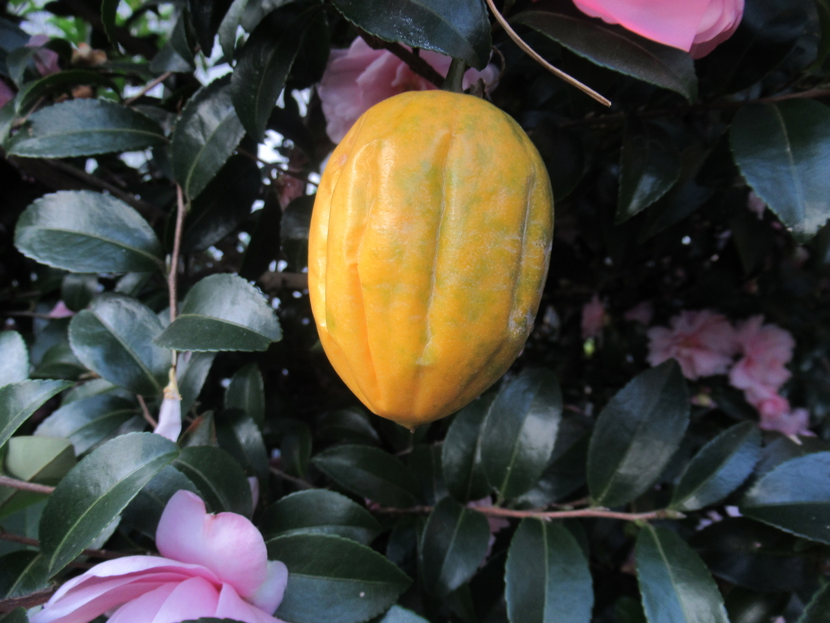 赤いカラスウリは知っていましたが、黄色のカラスウリを見たのは初めてでした。